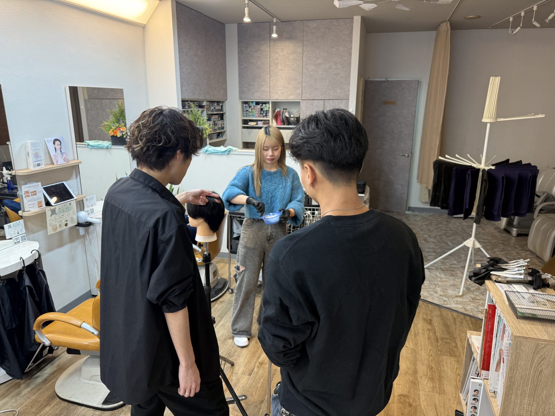 インターンシップでは、掃除はもちろん、お客様のお出迎えや、カラー、パーマのヘルプ(担当者のお手伝い)、お客様へのドリンク提供など、美容師アシスタントとしての様々な仕事を体験していただきました。