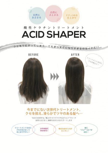 アシッドシェイパー酸熱トリートメントは、リンゴ酸などの有機酸を主成分とし、熱の力を利用して髪の内部構造を改善するトリートメントです。