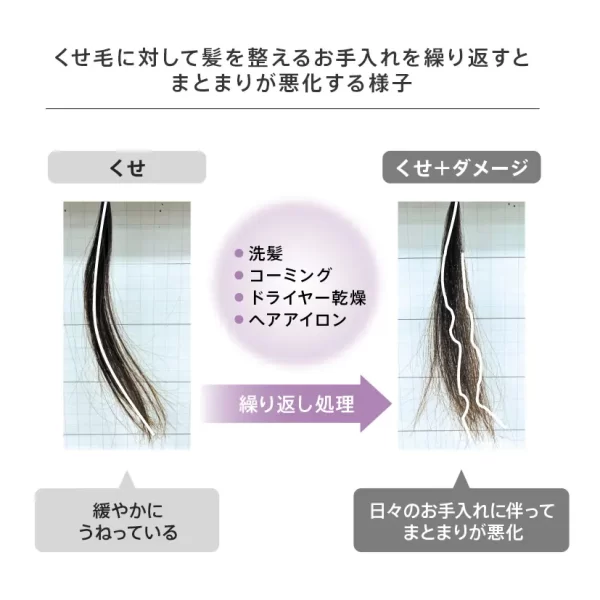 毛髪のゆがみにアプローチ:くせ毛やダメージによって広がりやすくなった髪を内側から整えます。