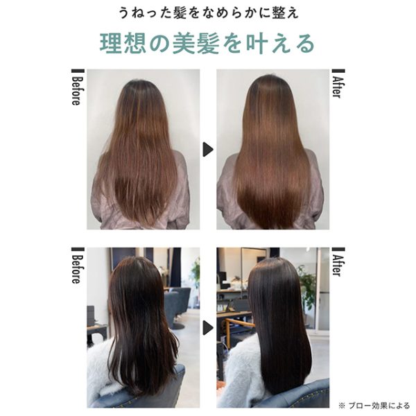髪のうねりや広がりを抑えつつ、ナチュラルなストレートヘアを実現します。縮毛矯正のような硬さがなく、柔らかな手触りが特徴です。