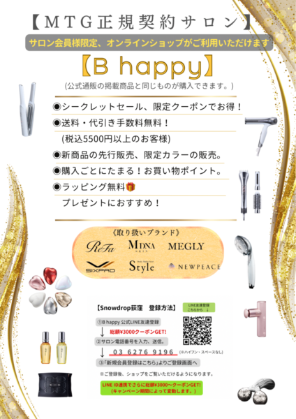 Refaなど取り扱い、公式オンラインショップBhappy、割引クーポン配布中!