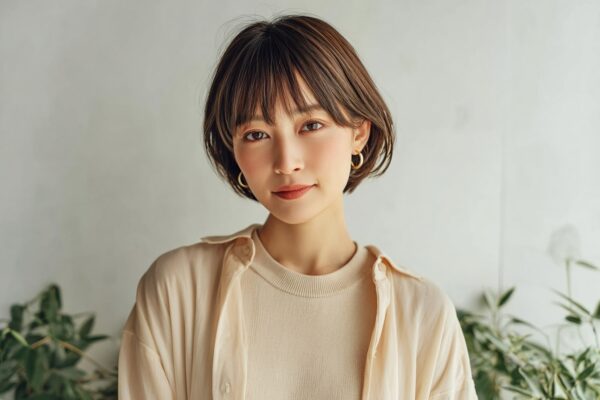 ふんわりとした丸みと、襟足にキュッとくびれをつけたシルエットで、首元をほっそり長く見せてくれるのが魅力です