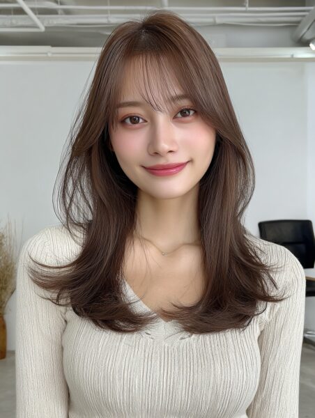 今回ご紹介するのは、ナチュラルなくびれミディに、今大人気の“透け感バング”を組み合わせた、トレンド感たっぷりのヘアスタイルです✨