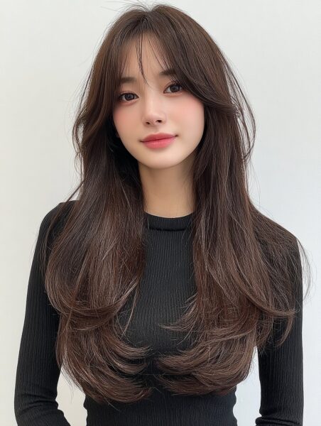 韓国ヘアのような“さらツヤ感”と“美シルエット”が叶う、今大人気のデザインです。
