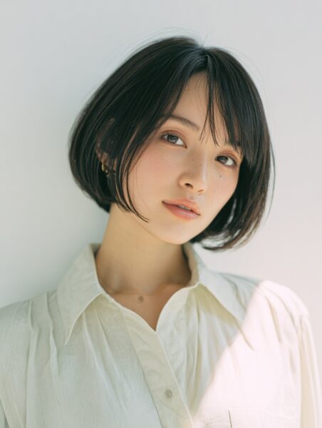 あごラインに沿うようにカットすることで、フェイスラインを自然にカバー。