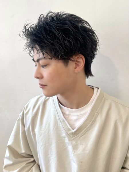 直毛でセットが決まりにくい方に人気なのが、メンズカット+ツイストスパイラルパーマ。